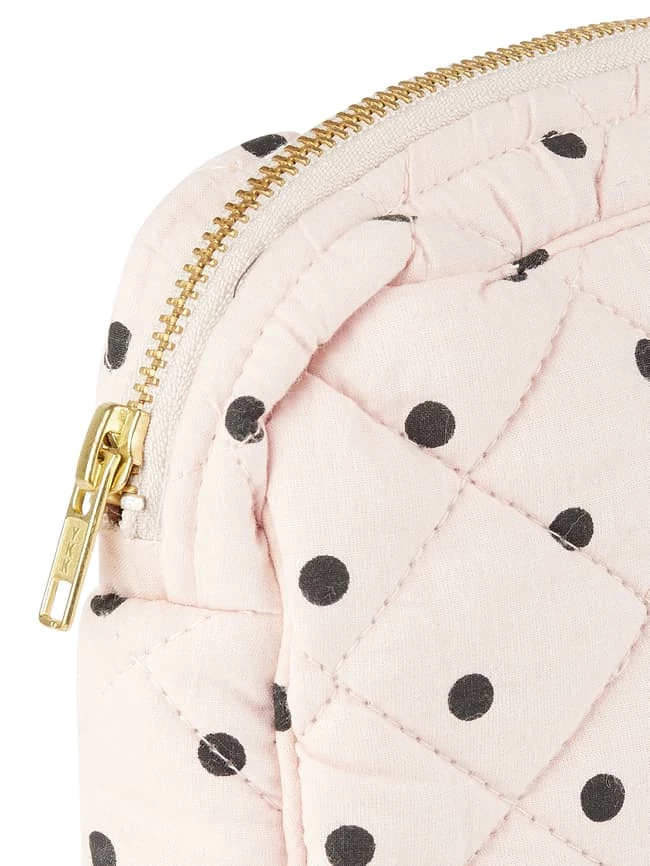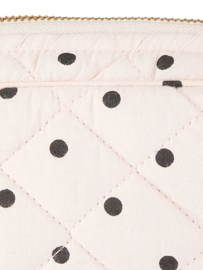 Die Kosmetiktasche von Becksöndergaard ist aus reiner Bio-Baumwolle gefertigt. Sie zeigt sich mit Steppnähten, Punktmuster und Reißverschluss.