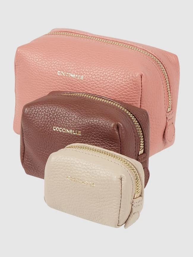 Die Kosmetiktasche von Coccinelle ist aus echtem Leder gefertigt. Sie kommt mit Reißverschluss, Hauptfach und herausnehmbarem Etui.
