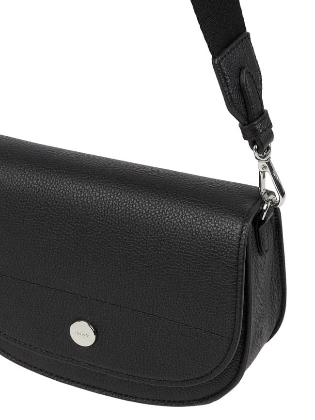 Die Saddle Bag von DKNY ist aus genarbtem Rindsleder gefertigt. Sie kommt mit Magnetverschluss, Außenfach und Logo.