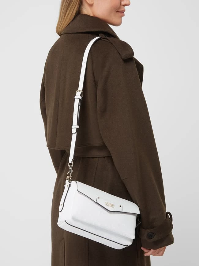 Die Handtasche von GUESS ist aus strapazierfähigem Material in Leder-Optik gefertigt. Sie kommt mit Überschlag, Metall-Logo und abnehmbarem Schulterriemen.