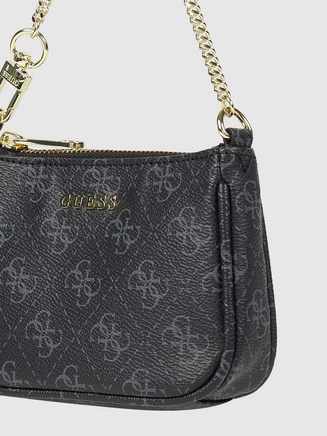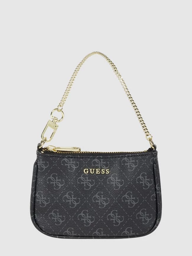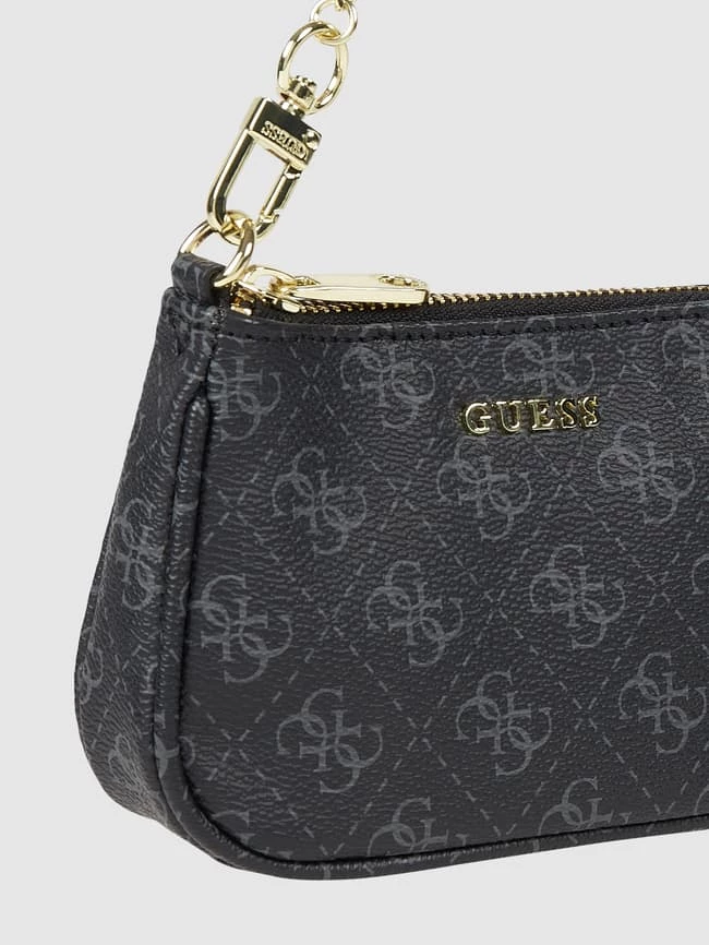 Die Pochette von GUESS ist aus einem strapazierfähigen Material gefertigt. Sie zeigt sich mit Allover-Label-Muster, Hauptfach mit Reißverschluss und abnehmbarem Riemen.