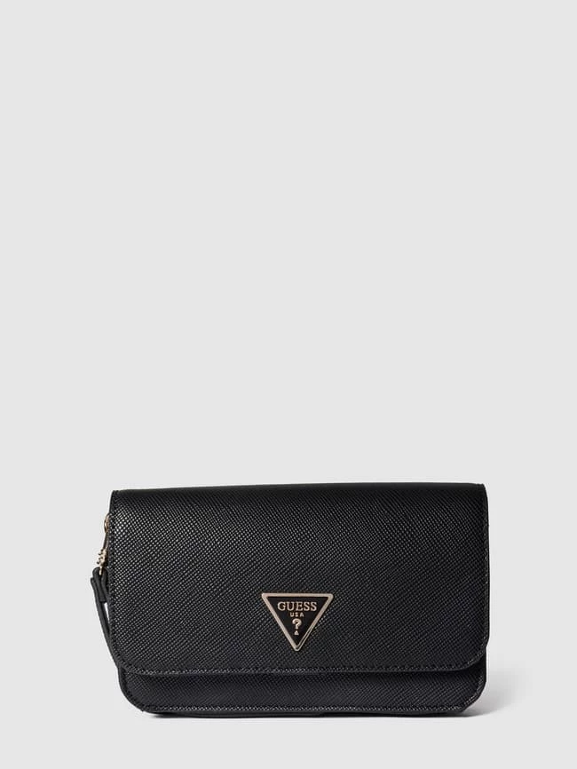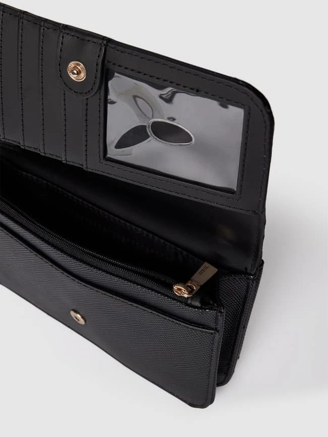 Die Pochette von GUESS ist aus einem strapazierfähigen Material gefertigt. Sie zeigt sich mit Gelenkschlaufe, rückseitigem Steckfach und Hauptfach mit Druckknopfverschluss, Kartenfächern sowie Label-Applikation.