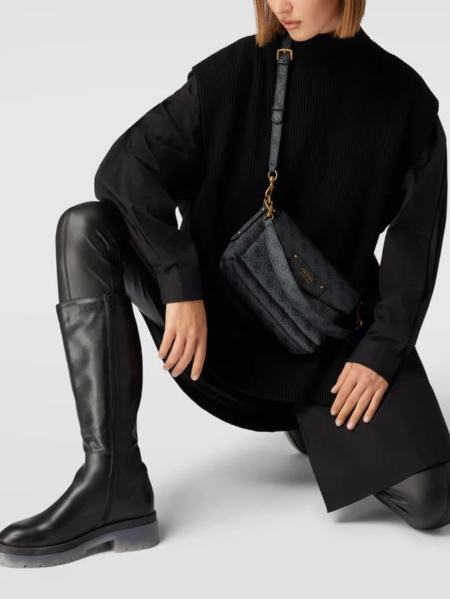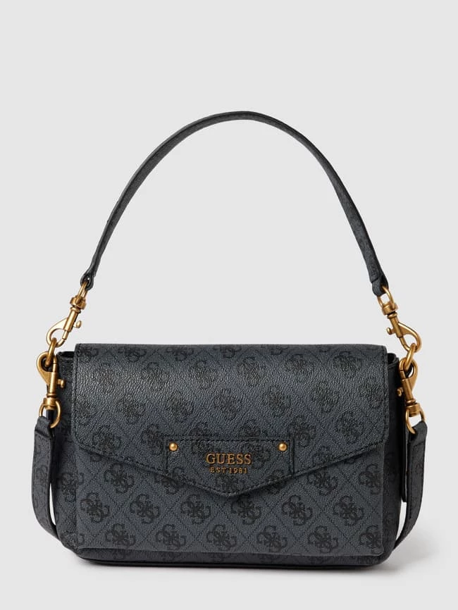 Die Umhängetasche von GUESS ist aus einem strapazierfähigen Material gefertigt. Sie zeigt sich mit kurzem Tragehenkel und Allover-Logo-Muster sowie abnehmbarem Schulterriemen.
