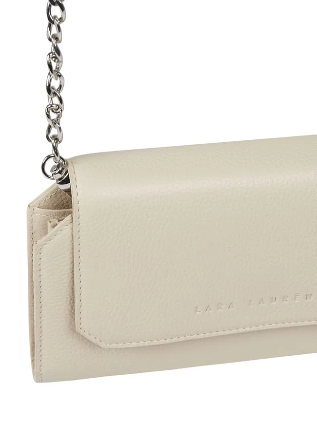 Die Clutch von LARA LAURÉN ist aus echtem Leder gefertigt. Sie kommt mit abnehmbarem Kettenriemen, Kartenfächern und RFID-blocking.