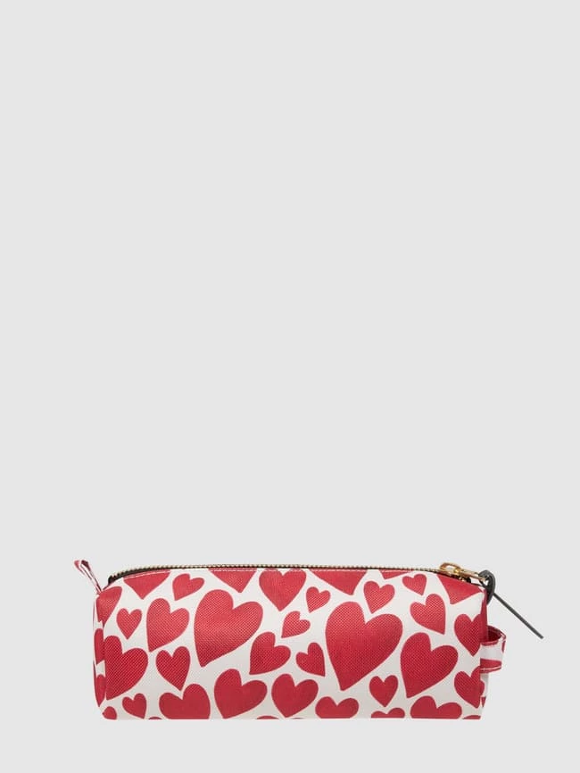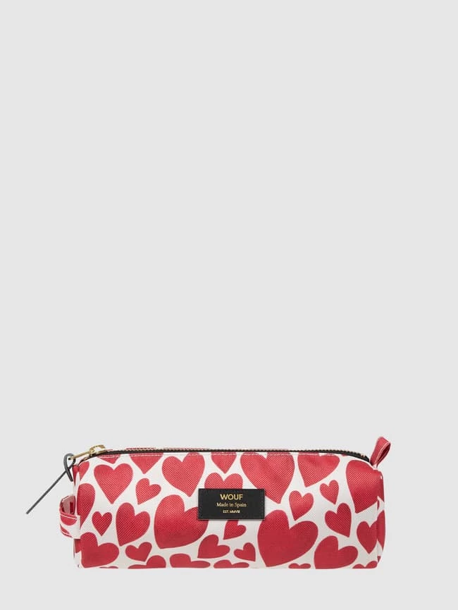 Das Mäppchen von WOUF ist aus recyceltem Polyester gefertigt und zeigt sich mit Herz-Prints. Es kommt mit Reißverschluss, Hauptfach und Lederbesatz.